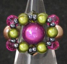 Haute de seulement 16 mm, une bague qui réunit des perles magiques dans des couleurs toniques avec des toupies et des perles nacrées en cristal Swarovski. Des couleurs qui évoquent une bougainvillée en fleurs...